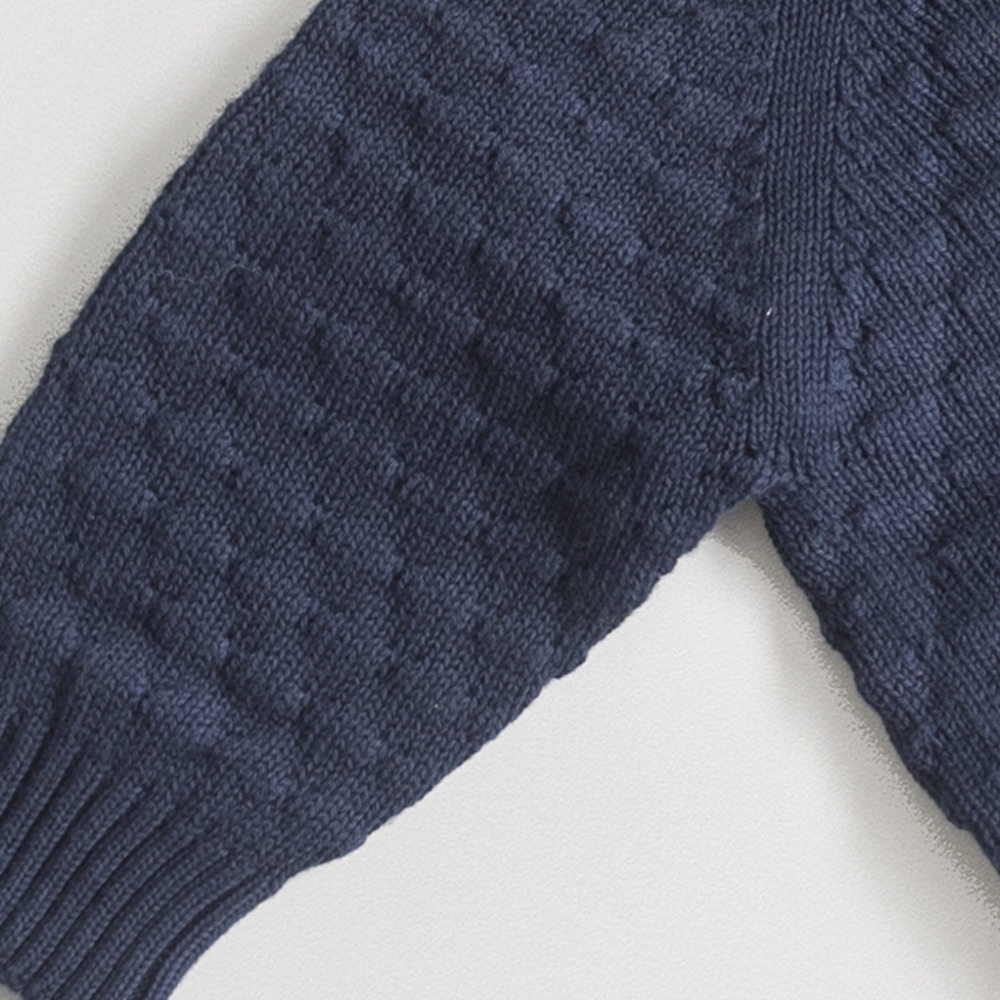 Cardigan Malmo con punto retenido. Genera ese relieve en forma de rombos que le brinda un detalle delicado.