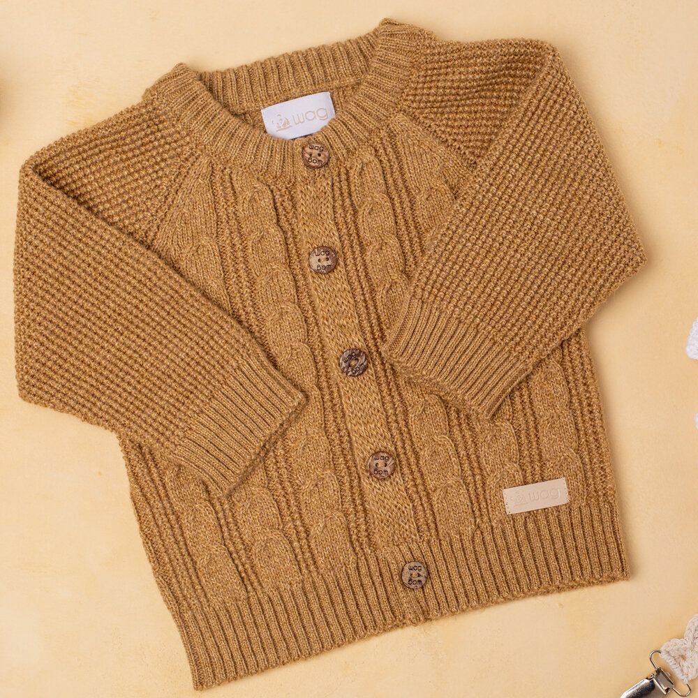 Cardigan Bruselas tejido en punto con trenzas y calado.