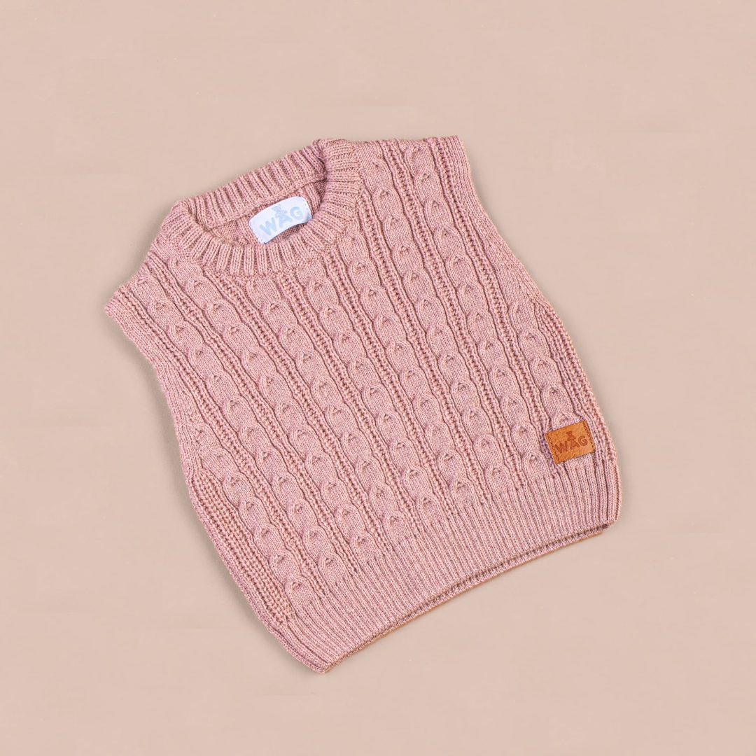 Chaleco Bursa tejido en punto con trenzas y calado.